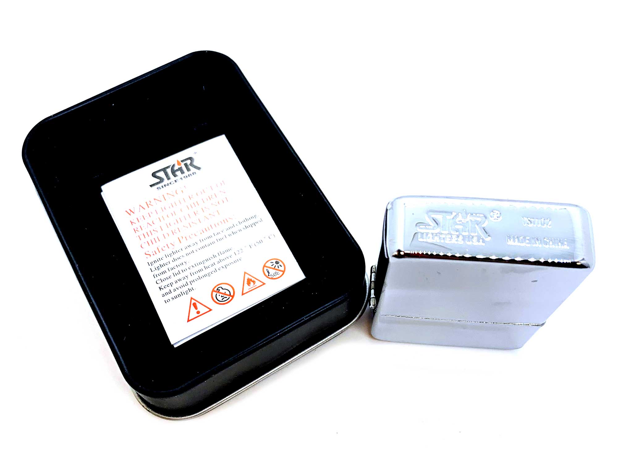 Бензиновая зажигалка Star поставляется в подарочной коробочке, которая добавляет ей элегантности и делает ее отличным подарком для любого человека, который любит активный отдых или просто ценит качественные и надежные вещи.
