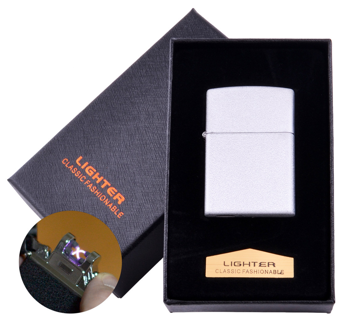 Электроимпульсная зажигалка в подарочной коробке LIGHTER (USB) №HL-137 White