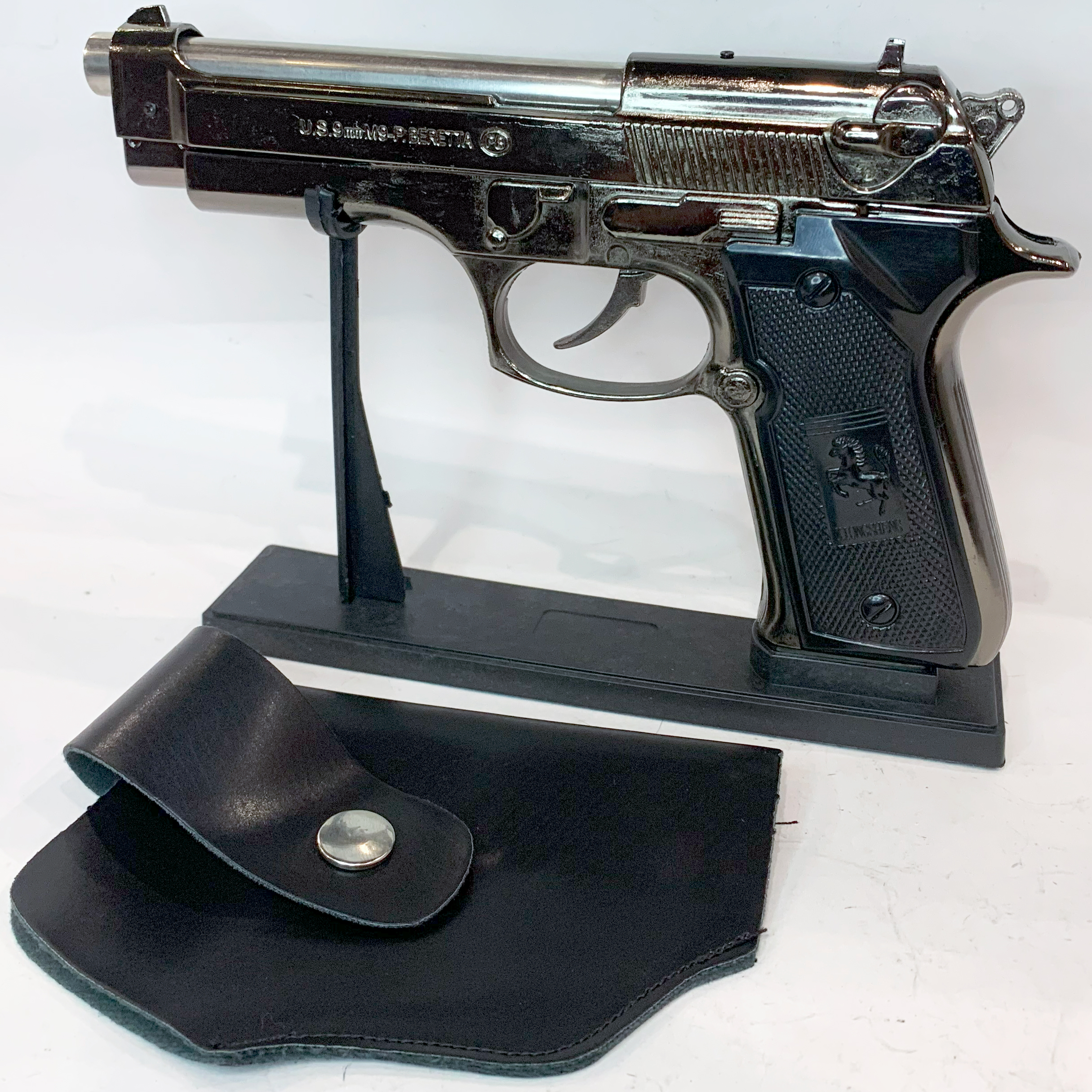Оличный аксессуар для коллекционеров и любителей уникальных вещей. Выглядит как настоящий боевой пистолет и комплектуется удобной кобурой для переноски.