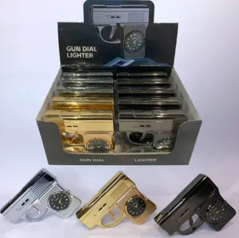 Оригинальная и стильная зажигалка в форме пистолета с встроенными кварцевыми часами – идеальное сочетание дизайна и функциональности. Компактный размер, удобная конструкция и мощное турбо-пламя делают эту модель отличным аксессуаром.