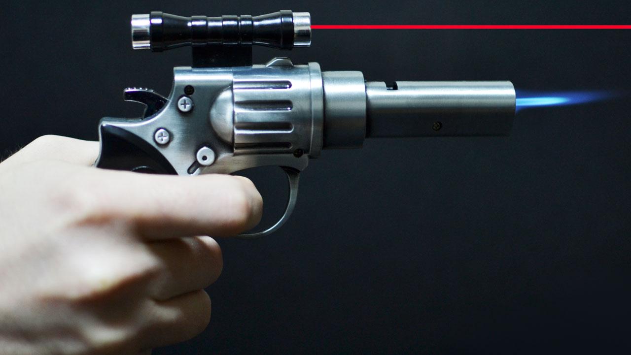 Зажигалка газовая Пистолет Револьвер с лазером