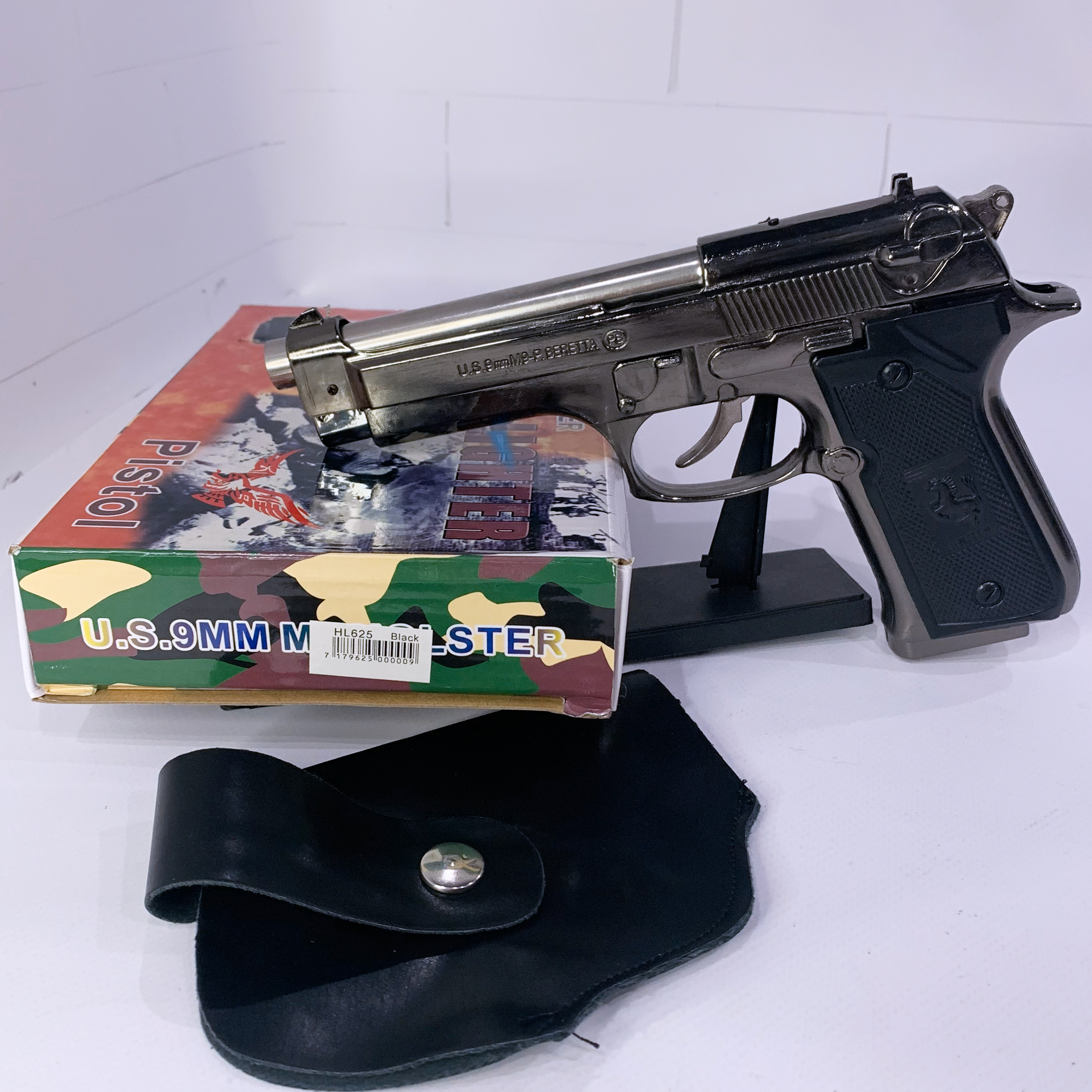 Оличный аксессуар для коллекционеров и любителей уникальных вещей. Выглядит как настоящий боевой пистолет и комплектуется удобной кобурой для переноски.