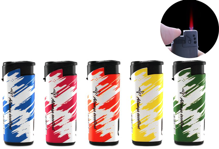 Зажигалки пластиковые FASHION LIGHTER (нажим на крышку,турбо пламя острое