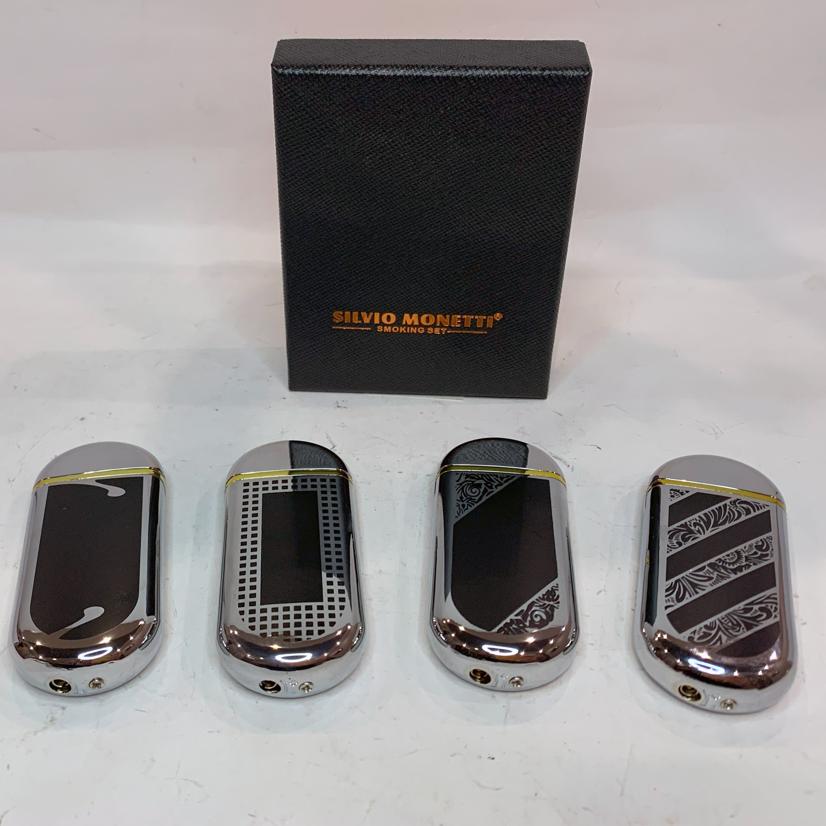 Зажигалка Silvio Monetti – стильный и надежный аксессуар для ценителей классического дизайна и качественного исполнения. Выполненная из прочного металла с изысканными узорами, она станет отличным подарком или стильным дополнением к вашему образу.
