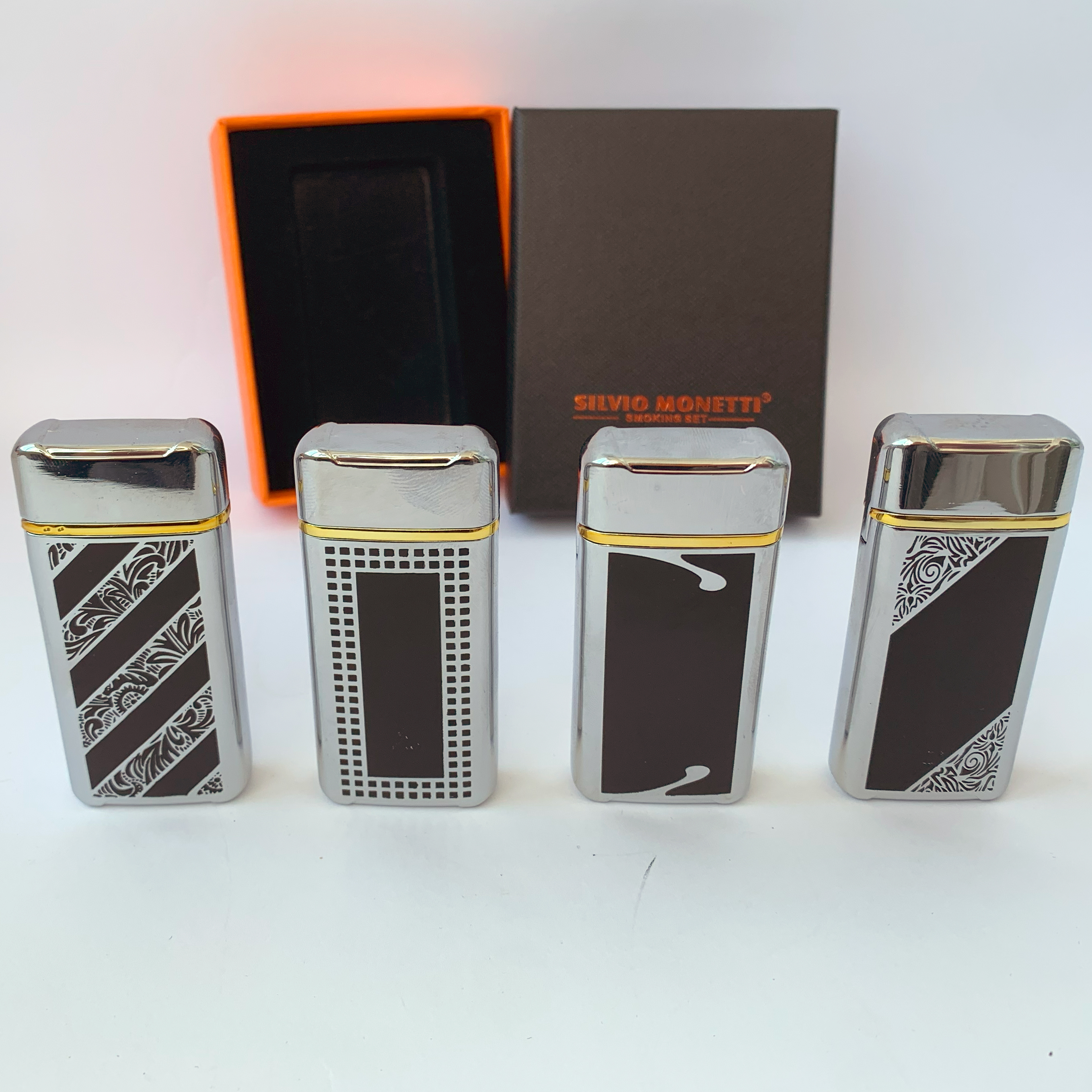 Зажигалка Silvio Monetti – стильный и надежный аксессуар для ценителей классического дизайна и качественного исполнения. Выполненная из прочного металла с изысканными узорами, она станет отличным подарком или стильным дополнением к вашему образу.