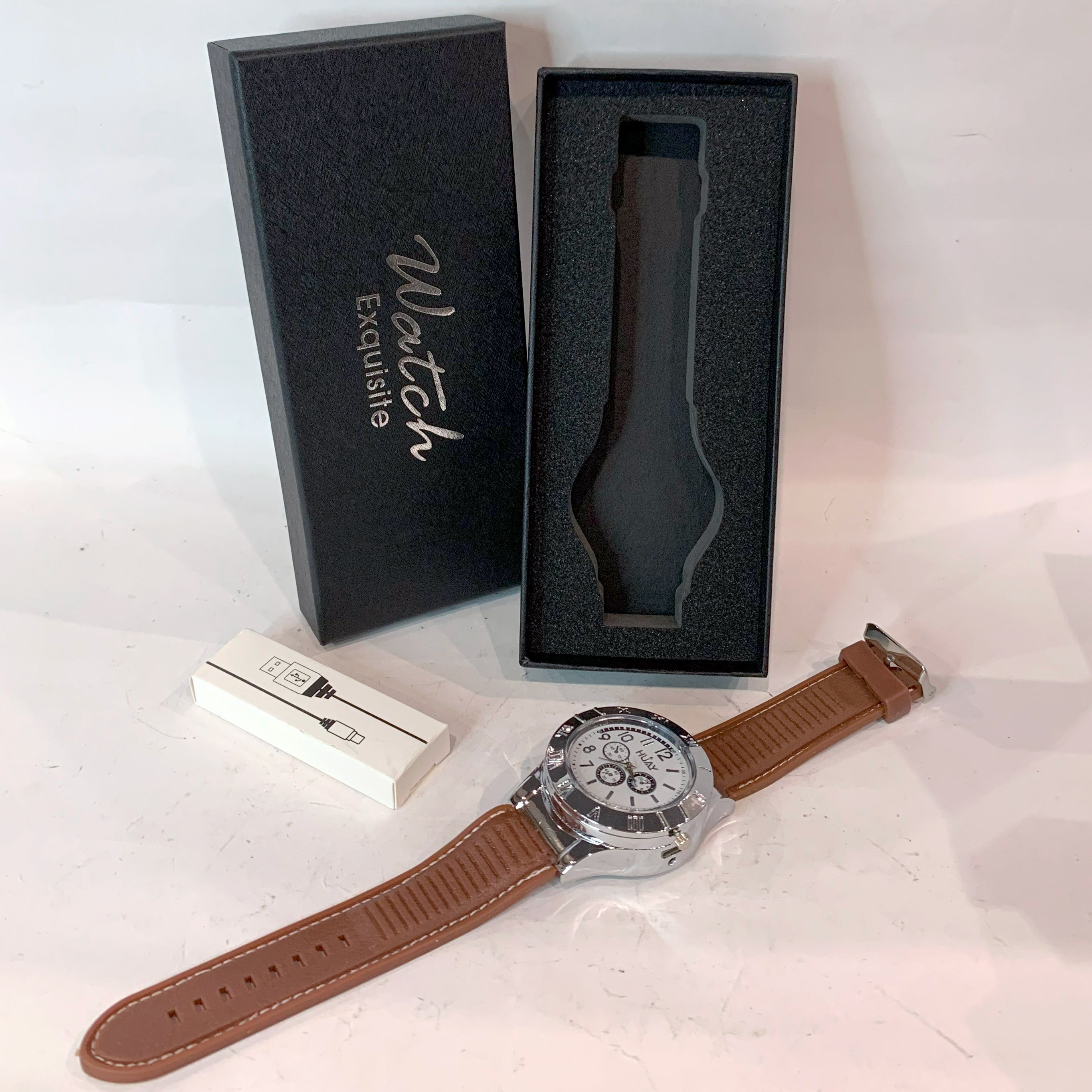 Уникальные наручные часы со встроенной электрической зажигалкой. Этот аксессуар сочетает в себе элегантный дизайн, надежность и удобство. Благодаря встроенному нагревательному элементу вам больше не понадобятся газовые или бензиновые зажигалки — просто нажмите кнопку, и спираль нагреется за секунды!