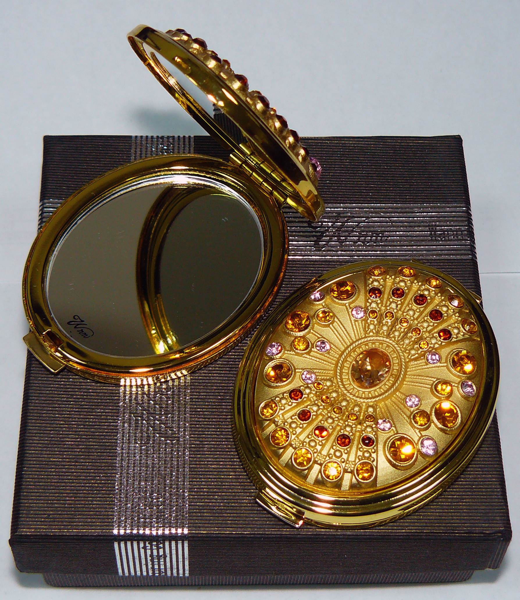 Зеркальце косметическое Стразы золото 18583 Белый (в коробке + чехольчик)
