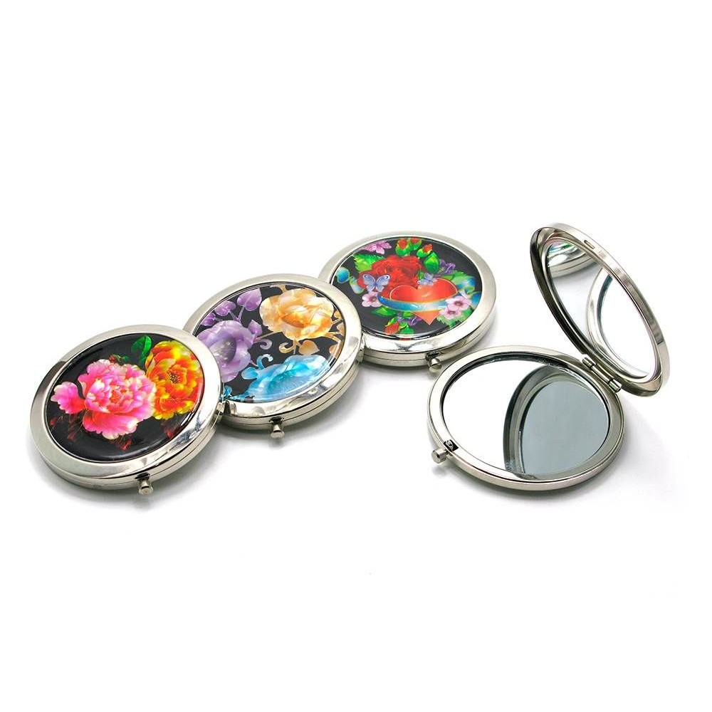 Зеркальце косметическое Цветы хром (d-7 см) код 25622