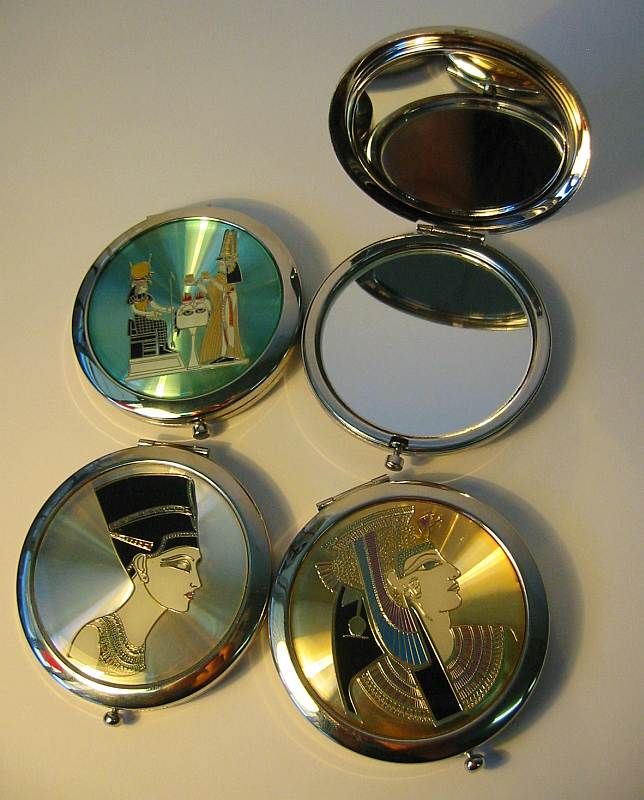 Зеркальце косметическое Египет хром (d-7 см)(в коробке + чехольчик) код 20233