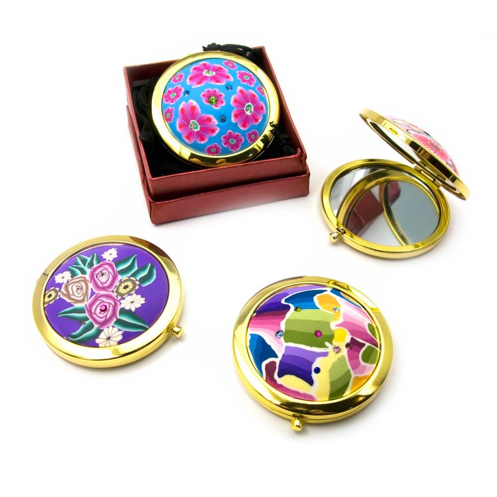 Зеркальце косметическое с рисунком золото (d-7 см)(в коробке + чехольчик)