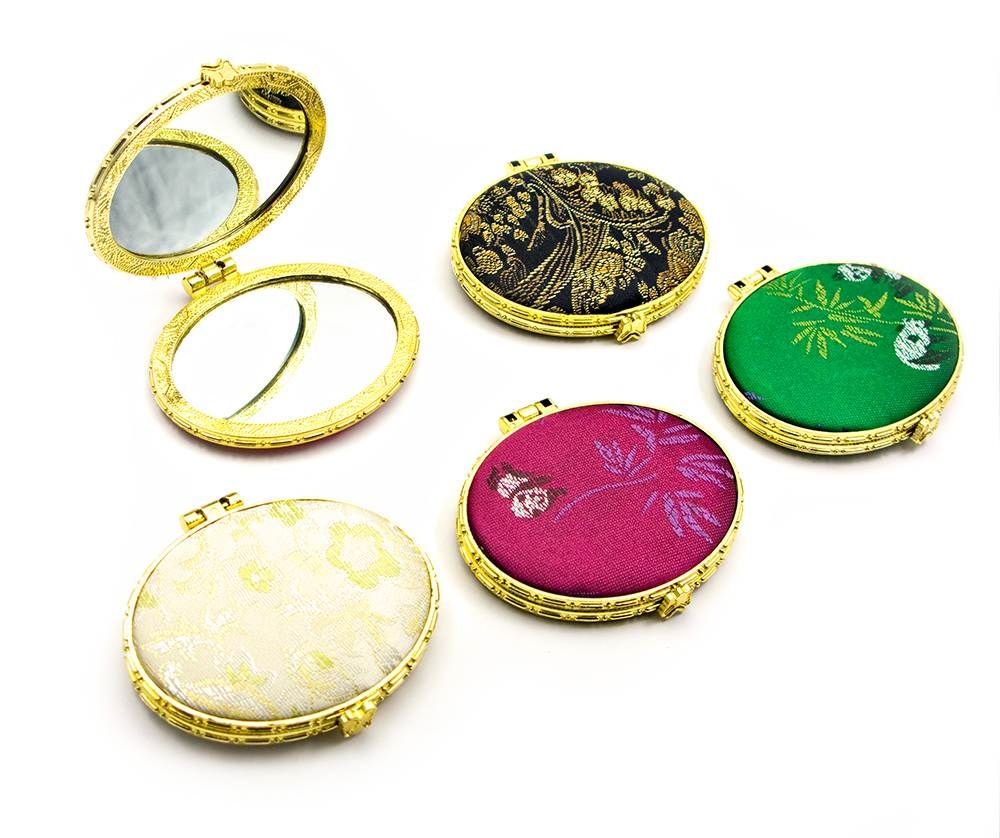 Зеркальце косметическое с камнями золотое напыление (в коробке + чехольчик)