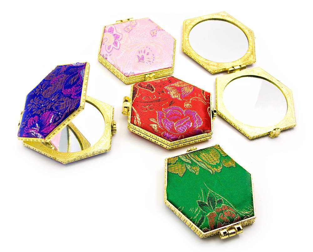 Зеркальце косметическое с вышивкой шестигранное (7х7х7 см) код 23974