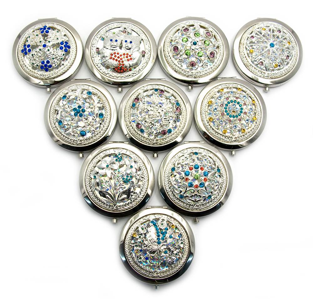 Зеркальце косметическое Узор с камнями хром (d-7 см) (в коробке + чехольчик)