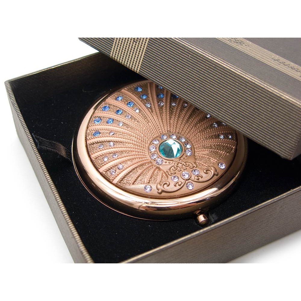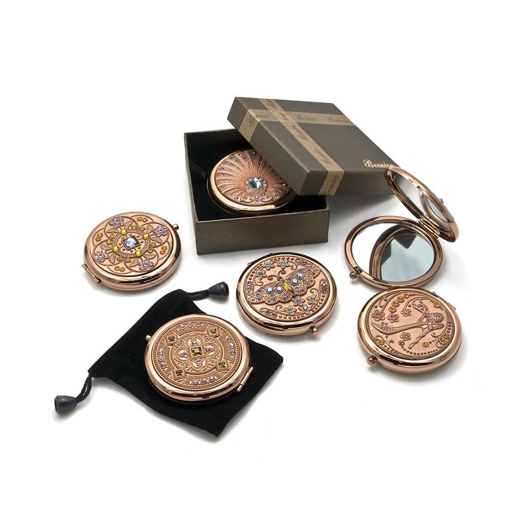 Зеркальце косметическое Узор с камнями медь(d-7 см)(в коробке + чехольчик)