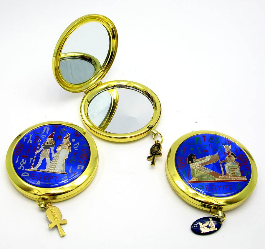 Зеркальце косметическое в золотом корпусе Египетская тематика (в коробке + чехольчик)