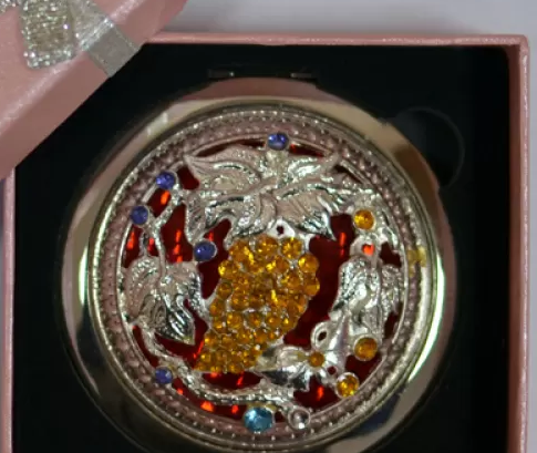 Зеркальце косметическое с камнями золотое напыление (в коробке + чехольчик)