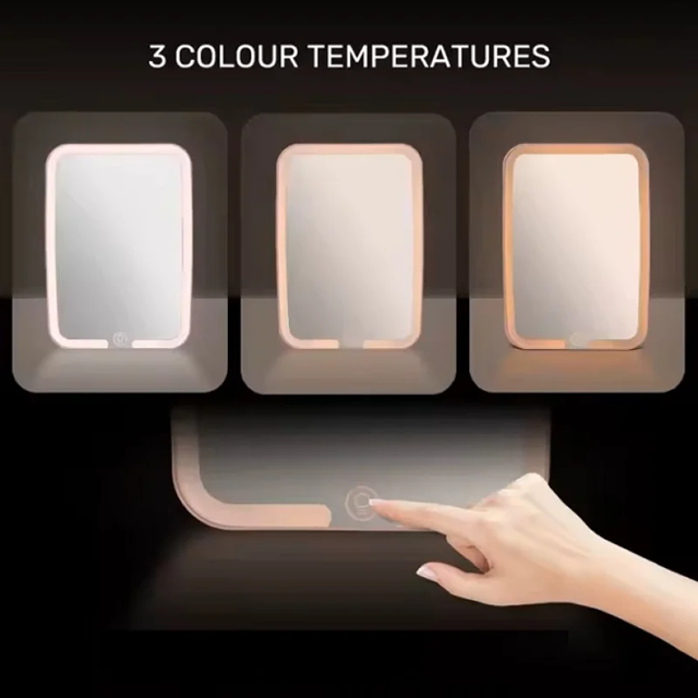 Зеркало для макияжа оборудована светодиодными лампами, равномерно распределенными по периметру аксессуара, которые имитируют естественное дневное освещение. Это помогает уверенно наносить макияж в хороших условиях. Даже самые сложные этапы «создания красоты» на лице, такие как подводка для глаз, украшение бровей, наращивание ресниц, не будут теперь столь трудными для вас. Регулировка яркости с помощью сенсорной кнопки управления. В качестве источника питания зеркала выступает встроенная литиевая батарея