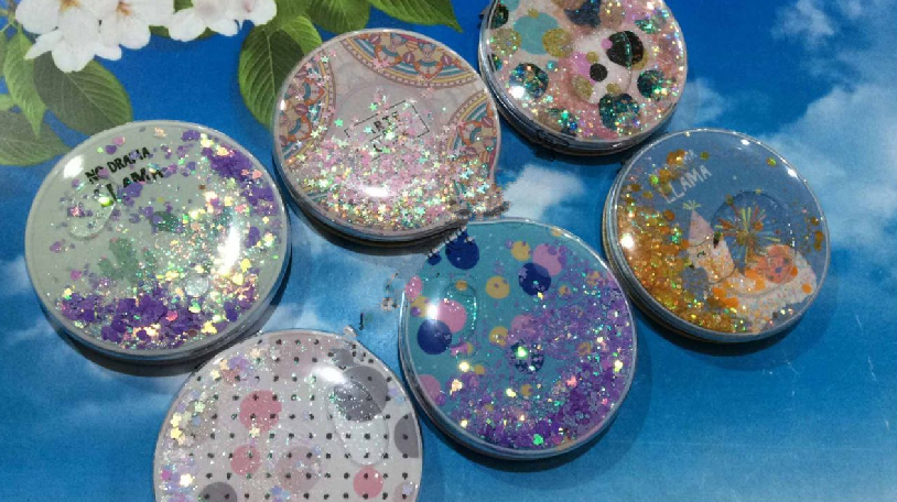 Зеркало карманное косметическое "Единорог" круглое с сыпучими блестками Разноцветный Unison (1257-6)