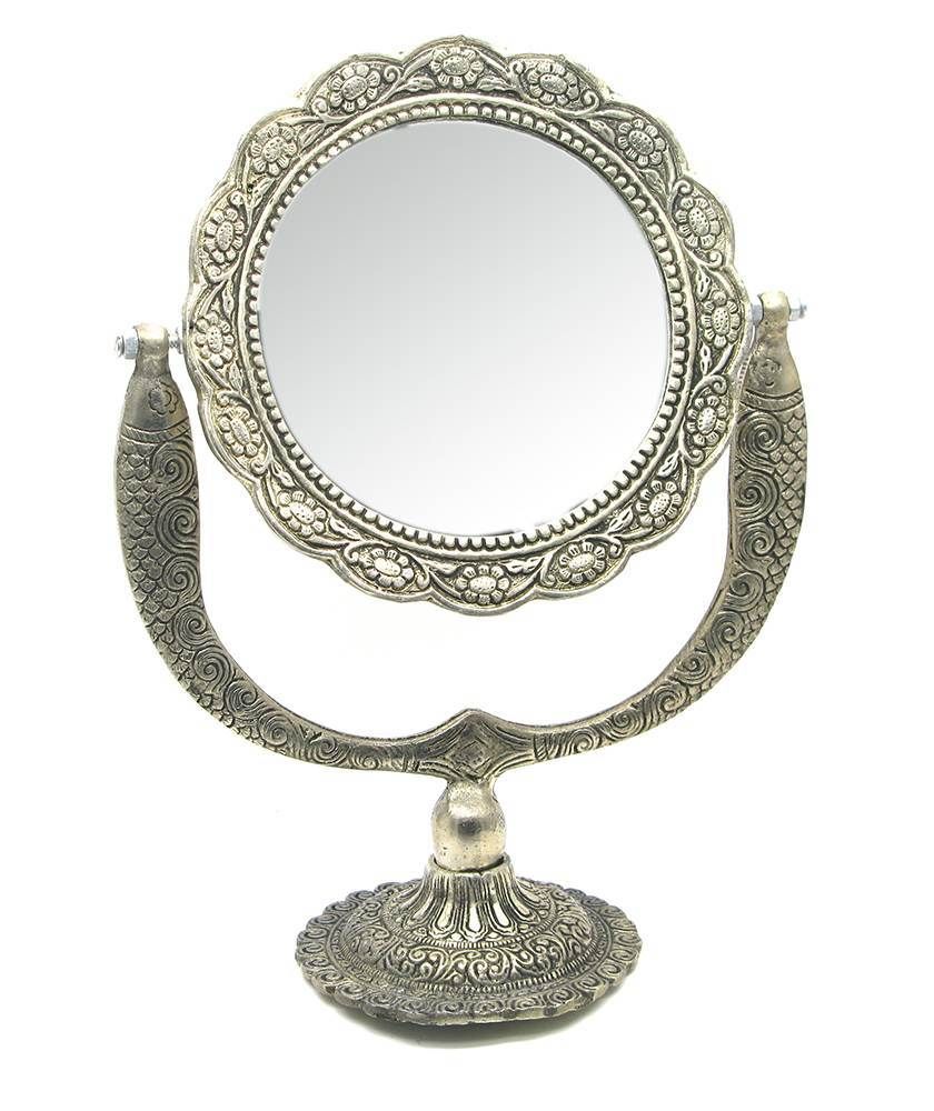 Зеркальце косметическое Узор с камнями золото (d-7 см) (в коробке + чехольчик)