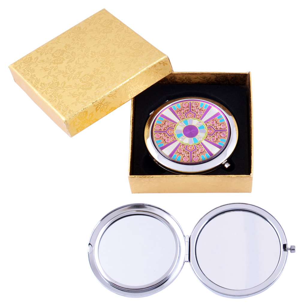 Зеркальце косметическое Стразы золото 18583 Розовый (в коробке + чехольчик)