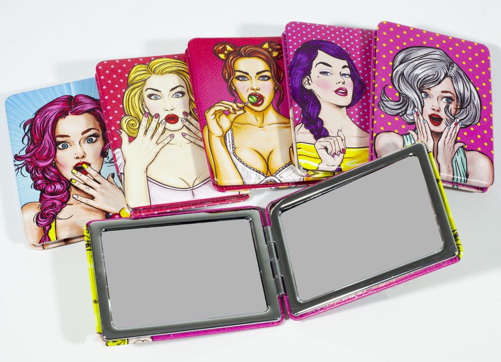 Зеркало карманное косметическое "Девушка" 6,2 х 8,5см Разноцветный Unison (1290-1)