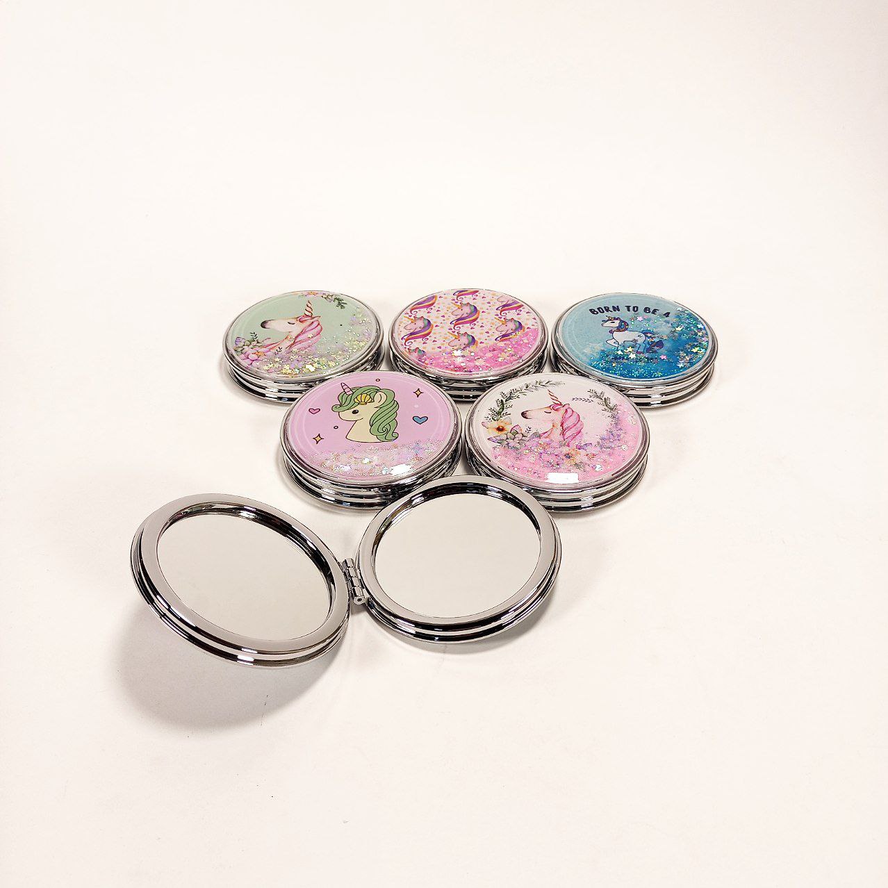 Зеркало карманное косметическое "Единорог" круглое с сыпучими блестками Разноцветный Unison (1257-6)