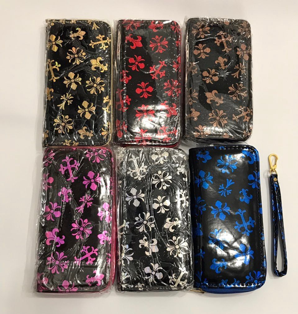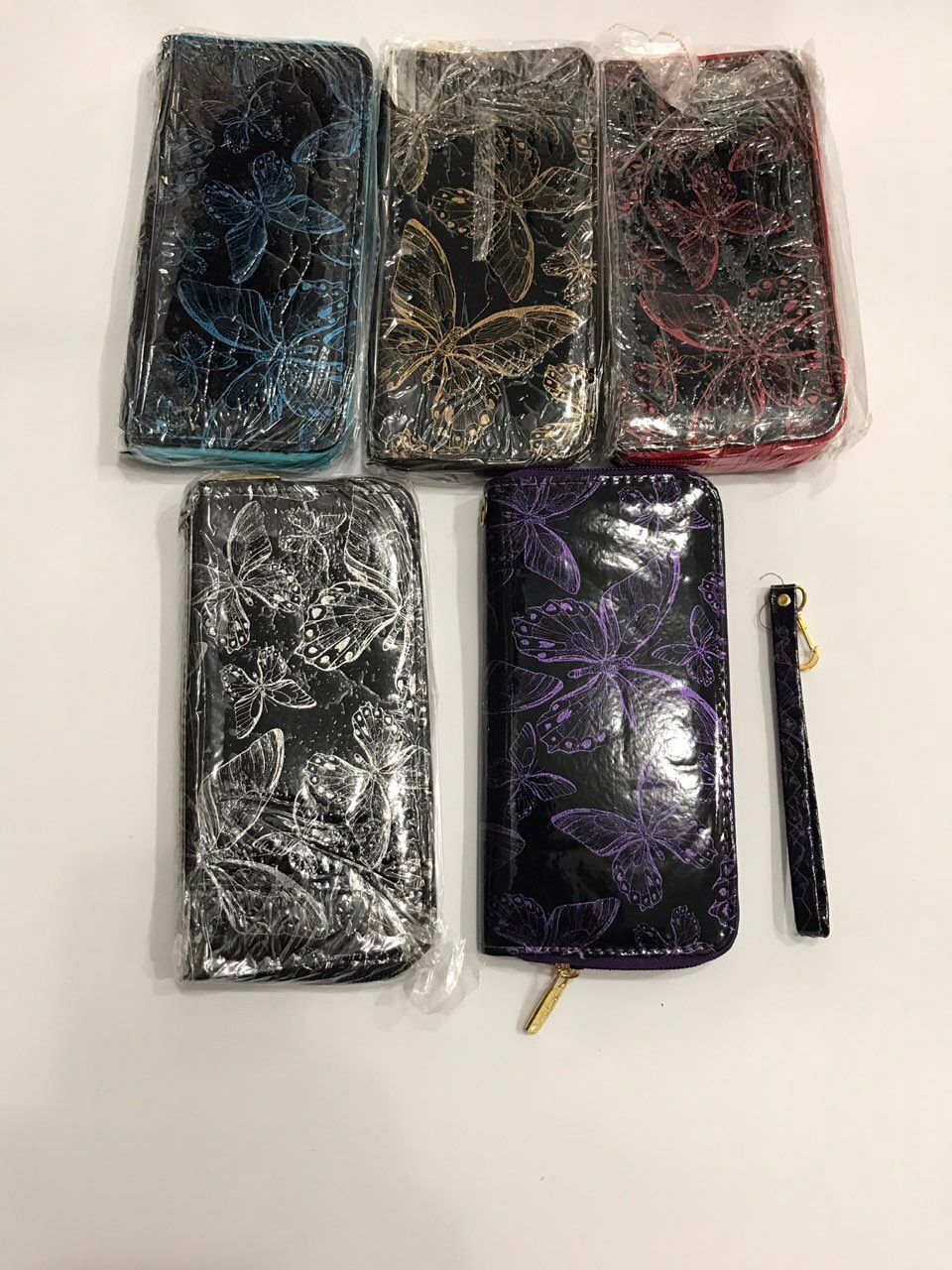 Женский кошелек на 1 змейке с ярким орнаментом цветов и бабочек