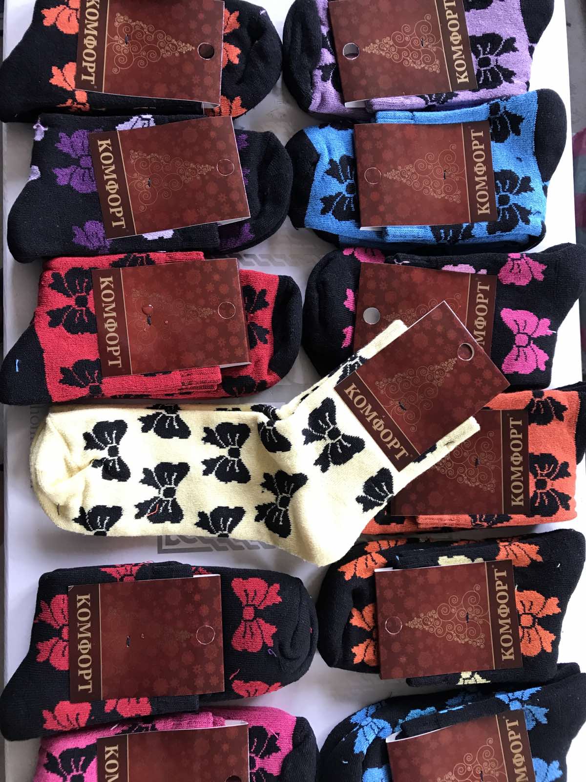 Носки Комфорт ликра хлопок махра средние женские 36-40 ассорти 12 расцветок бантиков