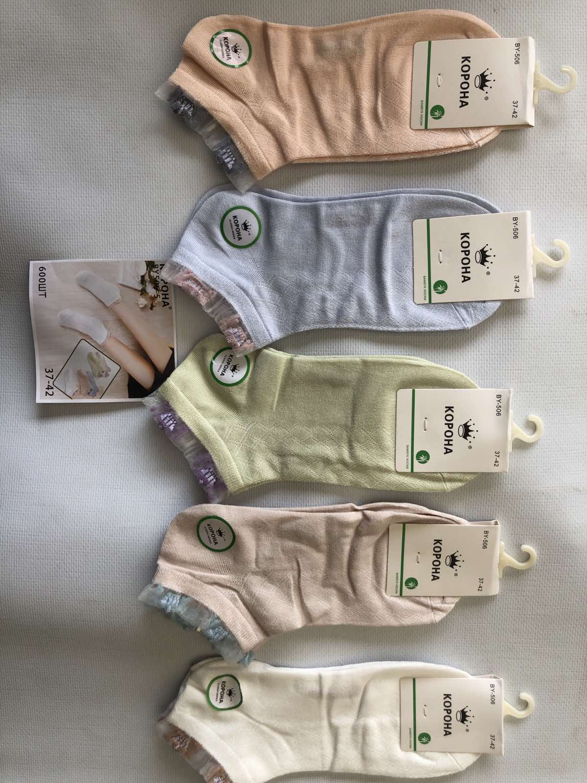 Носки КОРОНА ликра хлопок патик ( низкие ) 37-42 с бамбуковой нитью . Цвет : ассорти
