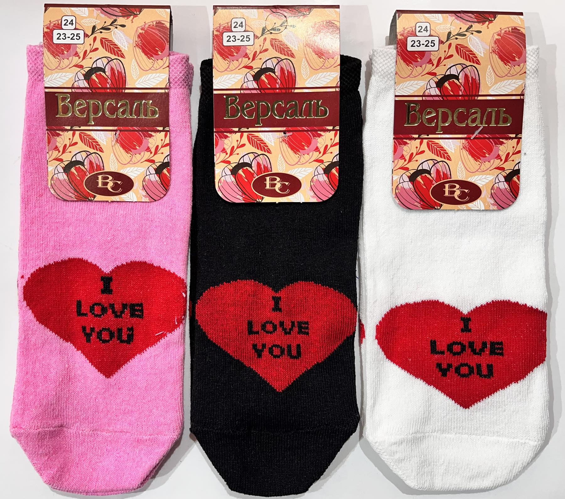 Носки НАТАЛИ носки женские 36-40 хлопок по низу, капрон по верху . Цвет : черный с цветком