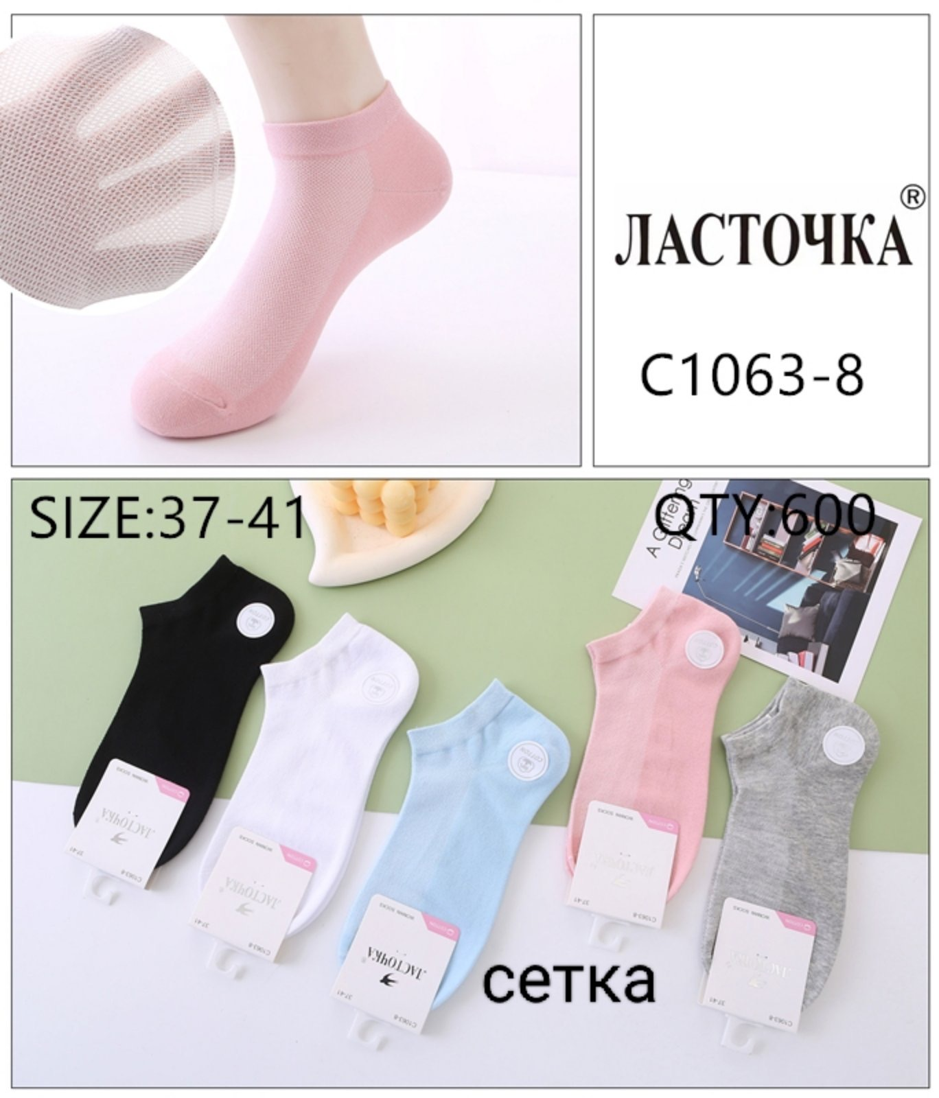 Носки INALTUN ликра хлопок патик ( низкие ) сетка 36-40 фламинго Цвет : ассорти Турция