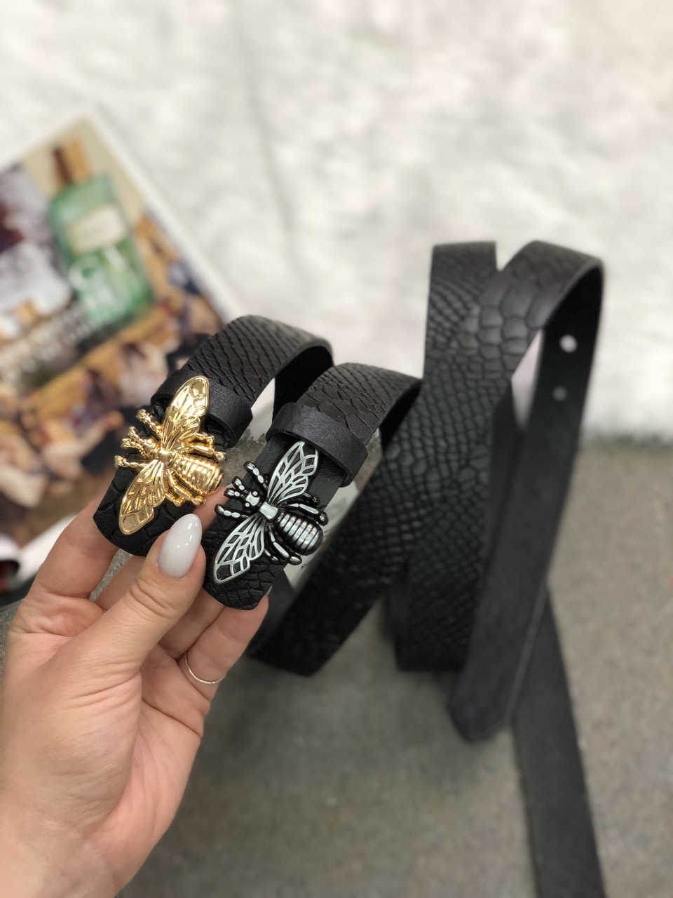 Ремень женский узкий, ширина пряжки 1,5см. Материал - искусственная кожа. Цвета - золото, серебро