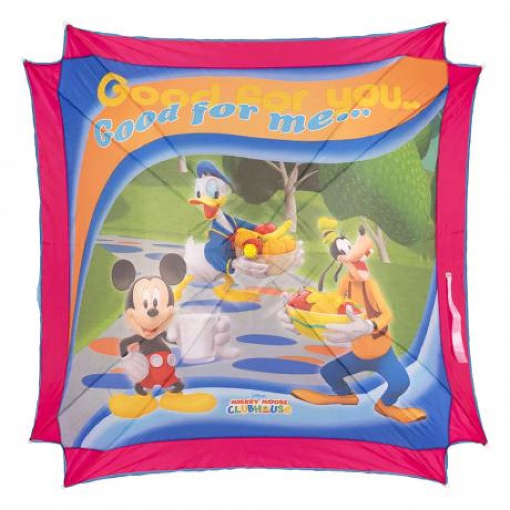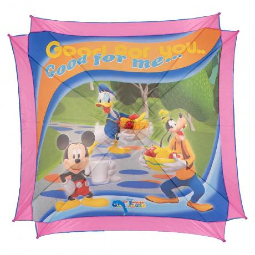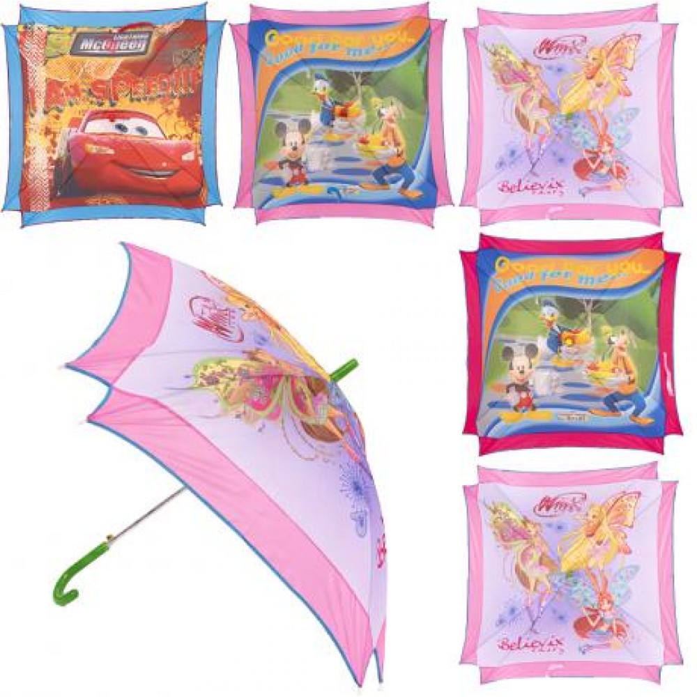 Парасолька - тростина, довжина рукояті 68 см. Кількість спиць 8 шт, довжина однієї спиці 50 см. Діаметр у розкритому вигляді 89 см. Ручка пластикова, гак. Щільний, напівпрозорий полімерний матеріал.