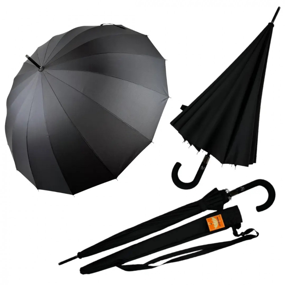 Зонт трость мужской Полуавтомат на 16 карбоновых спиц "антиветер", 1508 Венгрия