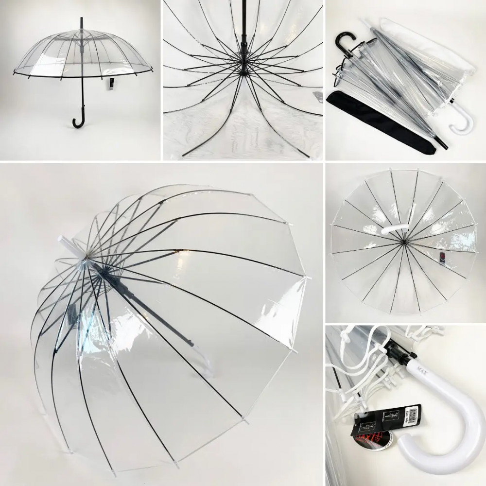 Прозрачный зонт-трость полуавтомат с ручкой-крюк, 14 спиц антиветер. 2000 Венгрия