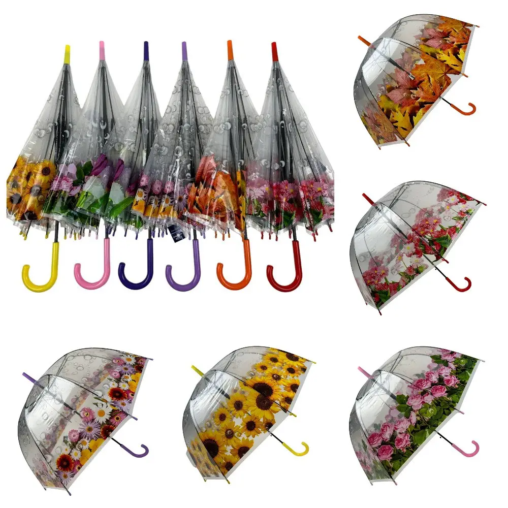 Прозрачный зонт трость с цветами, полуавтомат, на 8 спиц из метала, Венгрия (211)