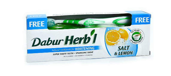 Зубная паста Отбеливающая соль с лимоном DABUR HERB'L 150г + зубная щетка