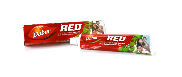 Аюрведическая зубная паста, защищающая от кариеса, пародонтоза, стоматита, галитоза. Dabur Red эффективно удаляет зубной налёт и укрепляет зубную эмаль. Уникальная красная зубная паста содержит комплекс натуральных компонентов, обеспечивающий эффективную защиту от любых заболеваний полости рта: Гвоздика предотвращает разрушение зубов. Мята оказывает противогрибковое и антибактериальное действие. Корень сутхи— противовоспалительное средство. Длинный перец (пиппали) и чёрный перец освежают дыхание, являются антибактериальными средствами. Лаванга облегчает зубную боль. Томар— антисептик, также освежающий дыхание. Камфора— местный анальгетик, антисептик. Карпура — анальгетик, антисептик. Харитаки— вяжущее средство. Марича освежает дыхание, является антибактериальным средством