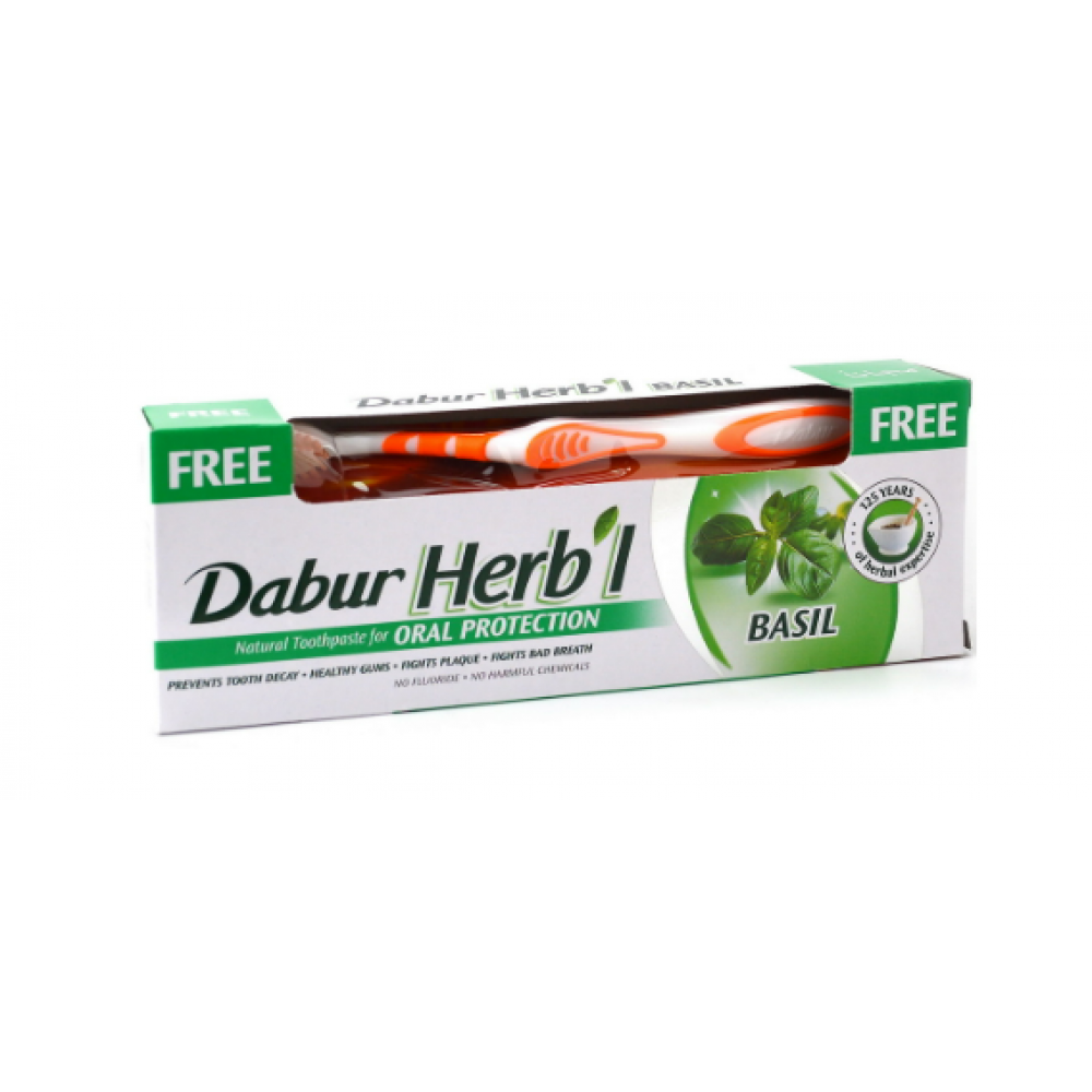 Аюрведическая зубная паста с экстрактом базилика предотвращает разрушение зубной эмали, укрепляет десны, снимает зубной налет и эффективно борется с неприятным запахом изо рта. Базилик натуральное антибактериальное средство для борьбы с воспалениями полости рта - устраняет запах. Кора акации аравийской обладает вяжущими свойствами, устраняющими кровоточивость и укрепляет десна и зубы. Натуральная аюрведическая зубная паста не содержит вредных химических веществ и фтора