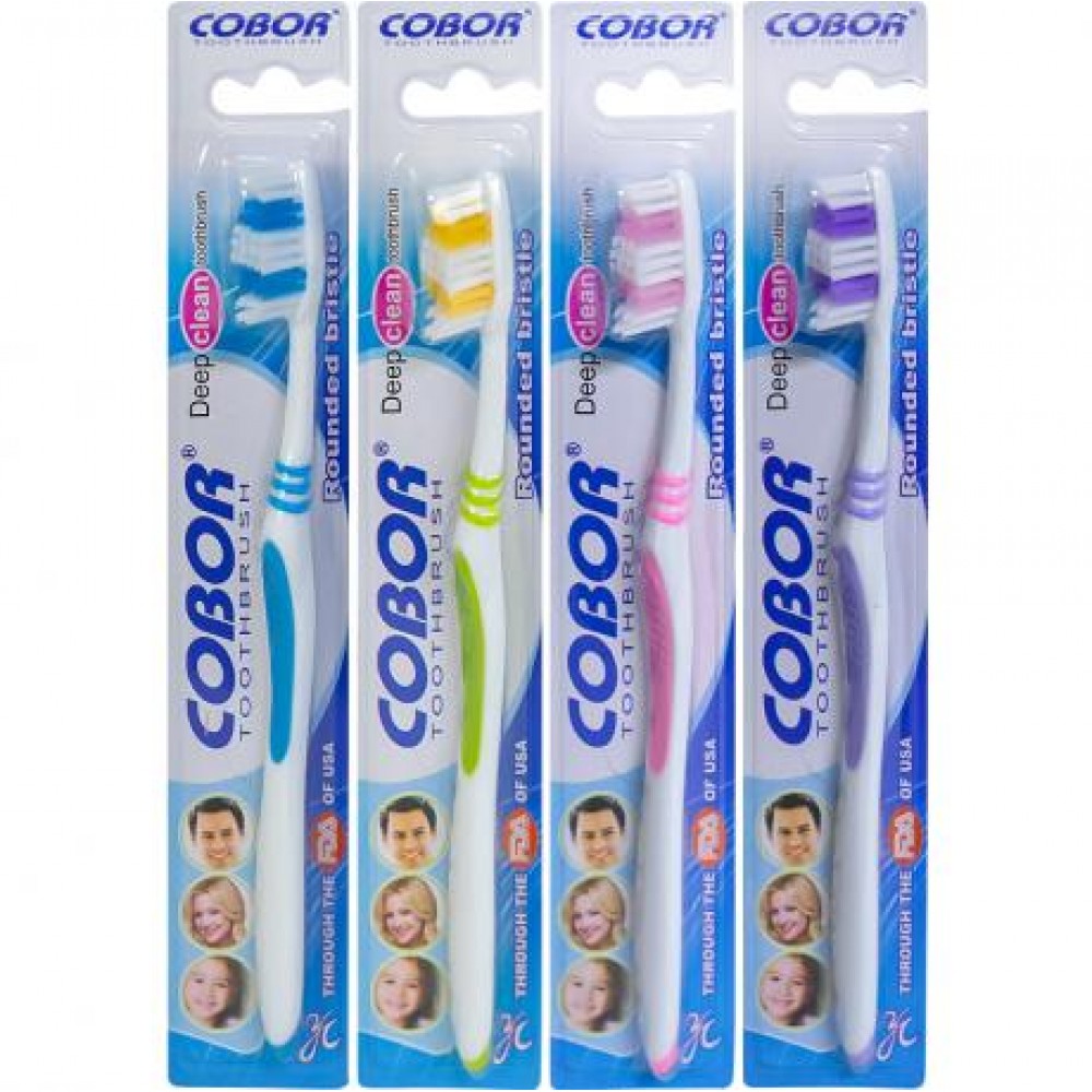 Пластикові гігієнічні зубні щітки «Cobor» із синтетичною щетиною хвилеподібної форми призначені для щоденного догляду за ротовою порожниною. Хвиляста щетина ефективно очищає поверхню зубів і міжзубні проміжки, допомагаючи видаляти наліт та залишки їжі без шкоди для емалі. Довжина зубної щітки становить 19 см, розмір головки — 3×1 см, висота щетинок — 1,2 см, що забезпечує зручність використання та якісне чищення.На зворотному боці головки розташована ребриста поверхня для очищення язика, яка допомагає зменшувати кількість бактерій і підтримувати свіже дихання. Кожна щітка має індивідуальну упаковку у блістері розміром 23×4 см з підвісом для зручної викладки. Транспортна упаковка розміром 23,5×12×6 см містить 12 блістерів. Виріб ідеально підходить для оптових інтернет-магазинів, аптек і торгових точок товарів особистої гігієни.