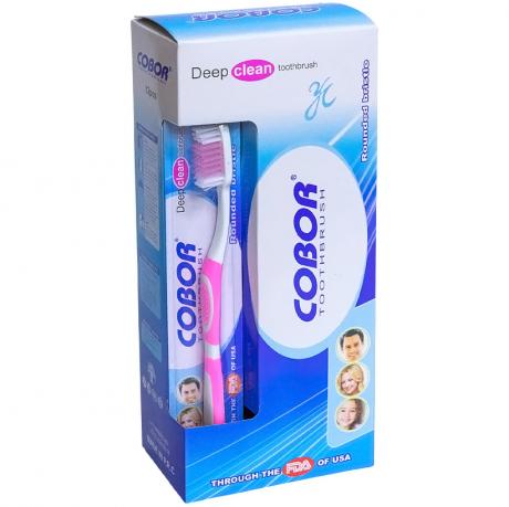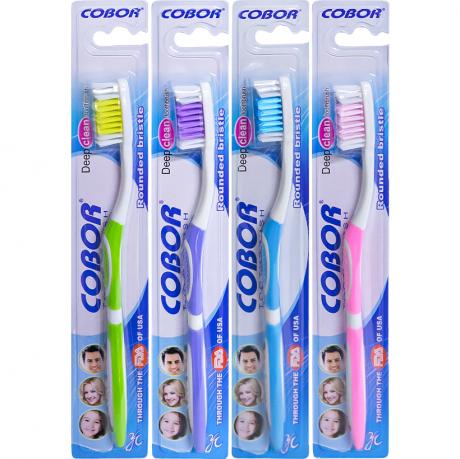 Пластикові гігієнічні зубні щітки «Cobor» із синтетичною щетиною хвилеподібної форми призначені для щоденного комплексного догляду за ротовою порожниною. Хвиляста щетина ефективно очищає поверхню зубів і міжзубні проміжки, допомагаючи видаляти наліт та залишки їжі без шкоди для емалі. Довжина зубної щітки становить 18 см, розмір головки — 3×1 см, висота щетинок — 1,2 см, що забезпечує зручність і якісне чищення. На зворотному боці головки розташована ребриста поверхня для очищення язика, яка сприяє зменшенню бактерій і підтриманню свіжого подиху. Кожна щітка упакована індивідуально у блістер розміром 23×3,5 см з підвісом. Транспортна упаковка 23,5×10×6 см містить 12 блістерів і оптимальна для оптового продажу та роздрібної торгівлі.