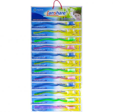Зубні щітки «Lanshare» L669 призначені для щоденної гігієни ротової порожнини та підходять для регулярного використання. Довжина щітки становить 18 см, що забезпечує зручне утримання та комфорт під час чищення зубів. Синтетична щетина ефективно видаляє зубний наліт і залишки їжі, забезпечуючи якісне очищення поверхні зубів і міжзубних проміжків без шкоди для емалі та ясен. Конструкція класична, без зони для очищення язика. Вироби представлені на підвісному м’якому блістері без картону розміром 47×23 см, на якому розміщено 12 зубних щіток. Кожна щітка має індивідуальний блістер розміром 21,5×3 см. Формат зручний для викладки та зберігання, оптимальний для оптового продажу.