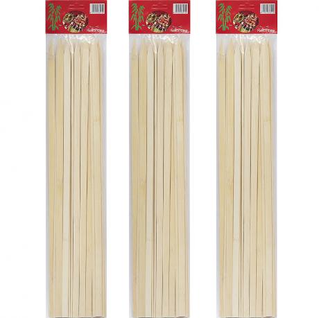 Палички - незамінний предмет для сервірування столу, особливо на природі. Застосовуються шпажки як шампура, використовуються один раз, коли готуються м'ясні страви. Бамбукові шампура можна використовувати для бутербродів, канапе, десертів. Шампури з бамбука попередньо замочують у воді. Вимочені в воді шампури НЕ будуть жадібно всмоктувати м'ясні соки і не будут горіти на вогні! Матеріал: бамбук. В упаковці 25штук. Розмір: 30см*9мм