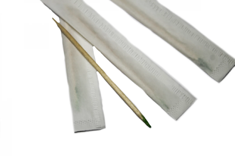 Зубочистки деревянные односторонние мятные в индивидуальной упаковке и пакете 100шт